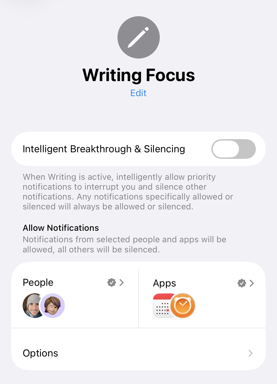 Defined a new “writing” focus on my devices that blocks notifications from all apps and people except my immediate household/family.